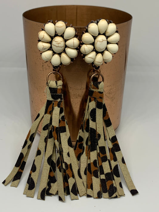 Leopard Fringe Inlaid Turquoise Earrings
