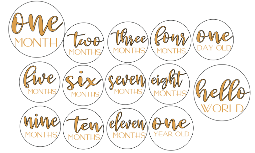 - Month Set includes Hello World, One Day, One Month - Eleven Months, One Year (14 markers).