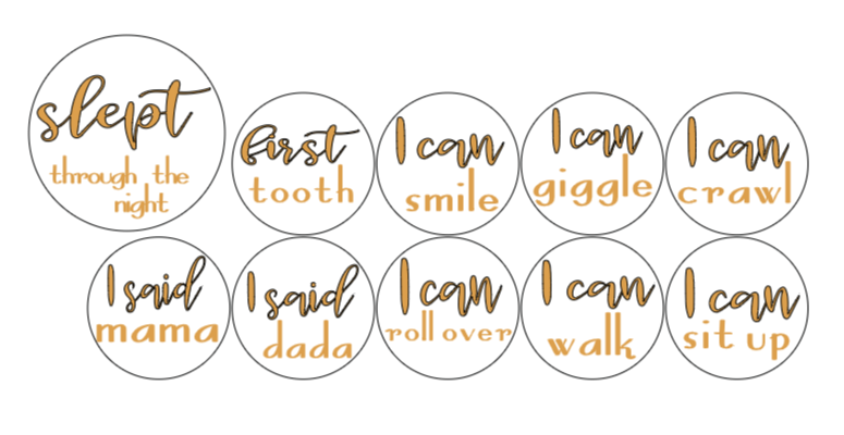- Special Events Set includes Slept through the night, First Tooth, I can smile, I can giggle, I can crawl, I said mama, I said dada, I can roll over, I can walk, I can sit up (10 markers).