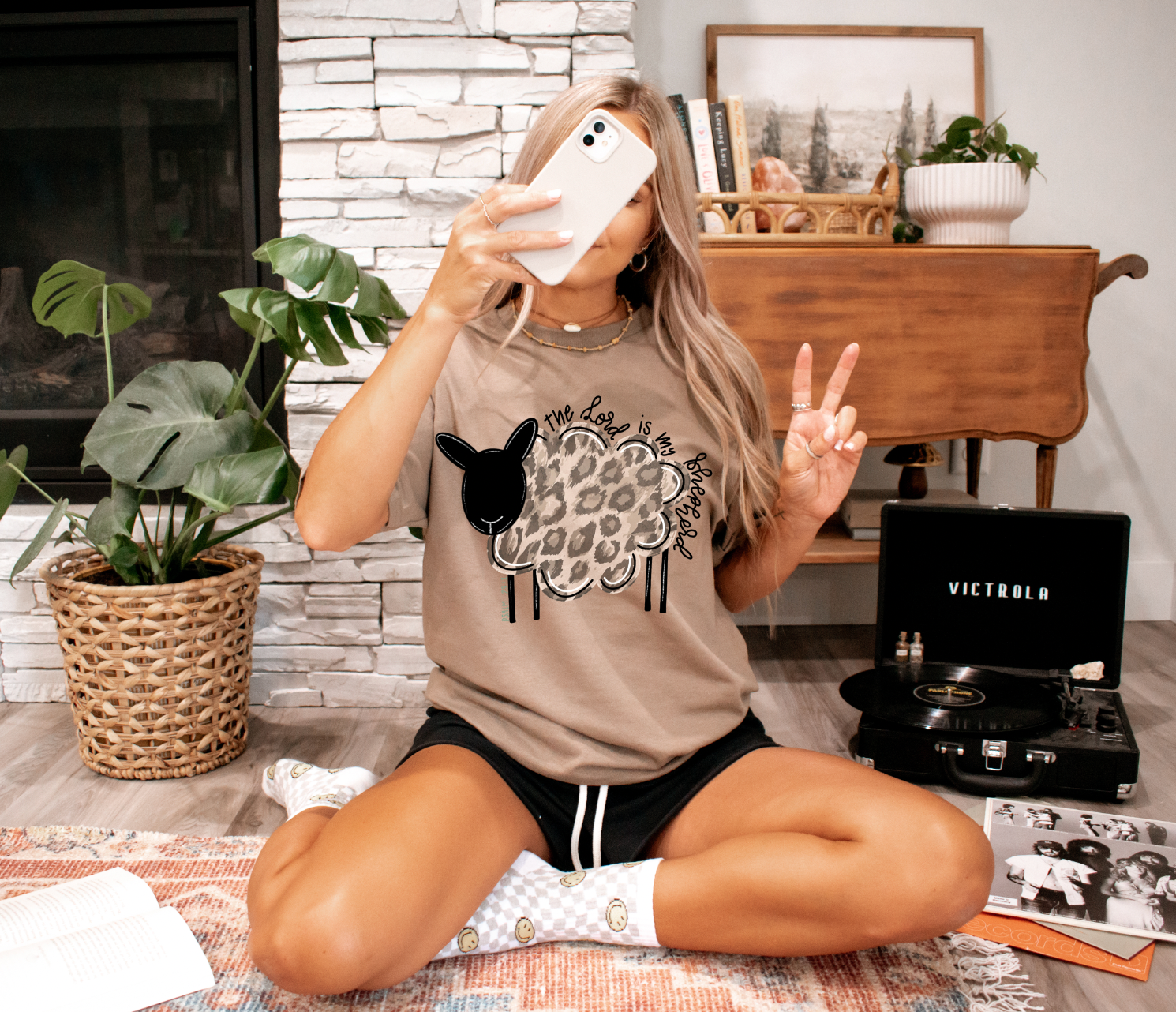 This savana brown tee with a leopard print sheep is super cute! It is 100% ring-spun cotton with a modern classic fit.