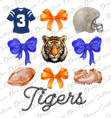 Tigers Football Coquette PNG - Instant Digital Download for Print and Cut, Sublimation